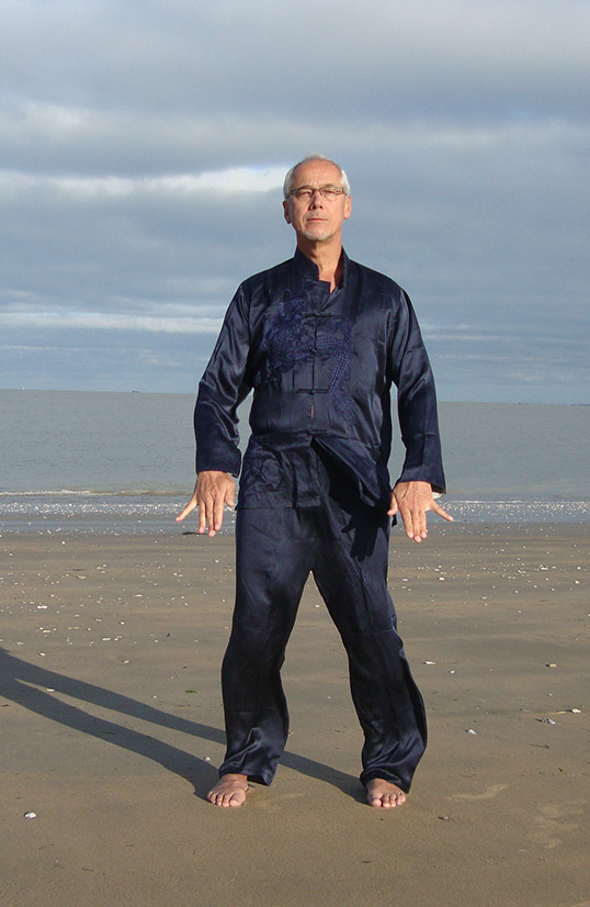 Pieds parallèles écartés d’une largeur d’épaules. Le regard est à l’horizon, la pointe de la langue en léger contact avec le sommet du palais (sensiblement à la limite de la zone ondulée et de la zone lisse du palais). Le menton tombe naturellement (nuque décontractée).